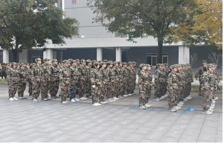 冬阳铺展的篮球场上,迷彩队列踩着整齐的鼓点向前——齐步的摆臂擦过风的轮廓,正步的落靴震响场地的回音,学子们把松散的肢体“焊”成钢铁阵列,肩背在一次次定格中挺成标枪。匕首操方阵更显锋芒:出拳带风、踢腿生劲,迷彩身影里跃动着青涩却凌厉的锐气;喊杀声撞在训练场上,把汗水淬成青春最亮眼的勋章。