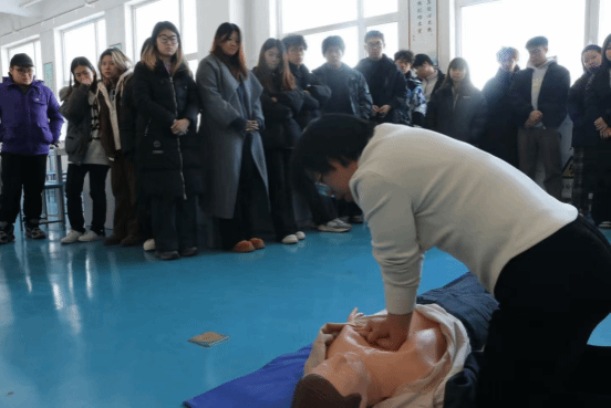 讲解完毕后,进入了学生实践环节。大家依次在模拟人上进行胸外按压和人工呼吸的操作,认真体会每个动作要领。李娜老师密切关注同学们的操作,及时纠正不规范的动作,确保每位参演者都能掌握正确的心肺复苏技巧。