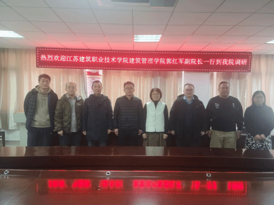 2026年1月19日上午,江苏建筑职业技术学院建筑管理学院副院长郭红军率队莅临我院开展专题调研交流,我院副院长李培荣出席,教产研办公室主任韩向明、工程造价系主任闫玉红及工程造价专业负责人、骨干教师代表参与座谈。